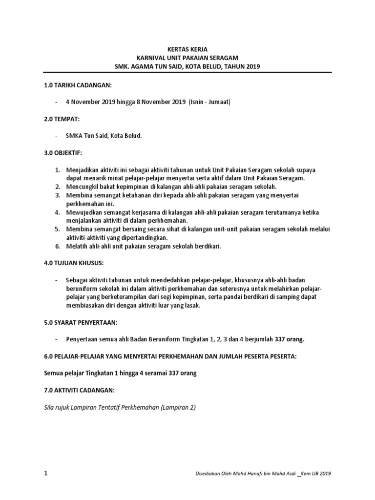 Kertas Kerja Karnival Unit Uniform 2019 Pdf